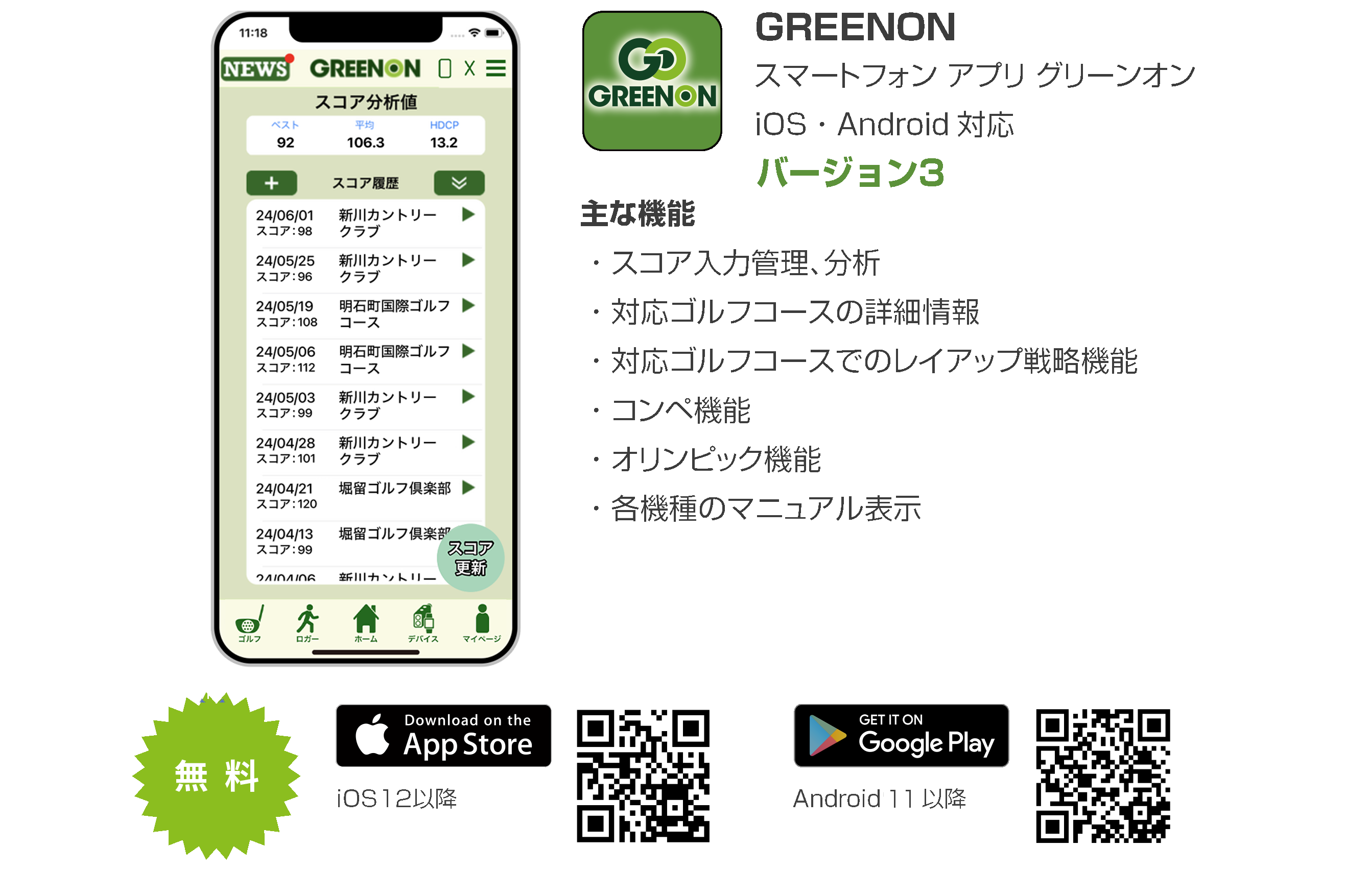 スマートフォンアプリ「GREENON」は機能満載のゴルファーのための無料アプリ。