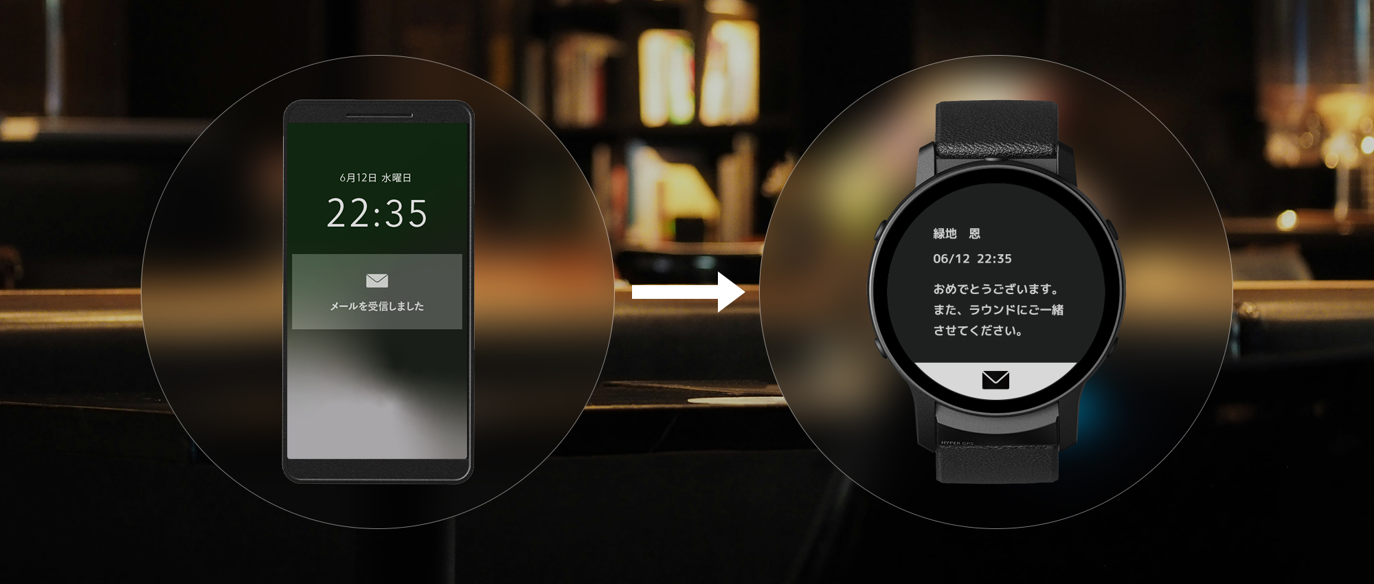 スマートフォンアプリ「GREENON」とBluetoothの連携でメール・電話・LINE・SMSの通知が振動して表示されます。