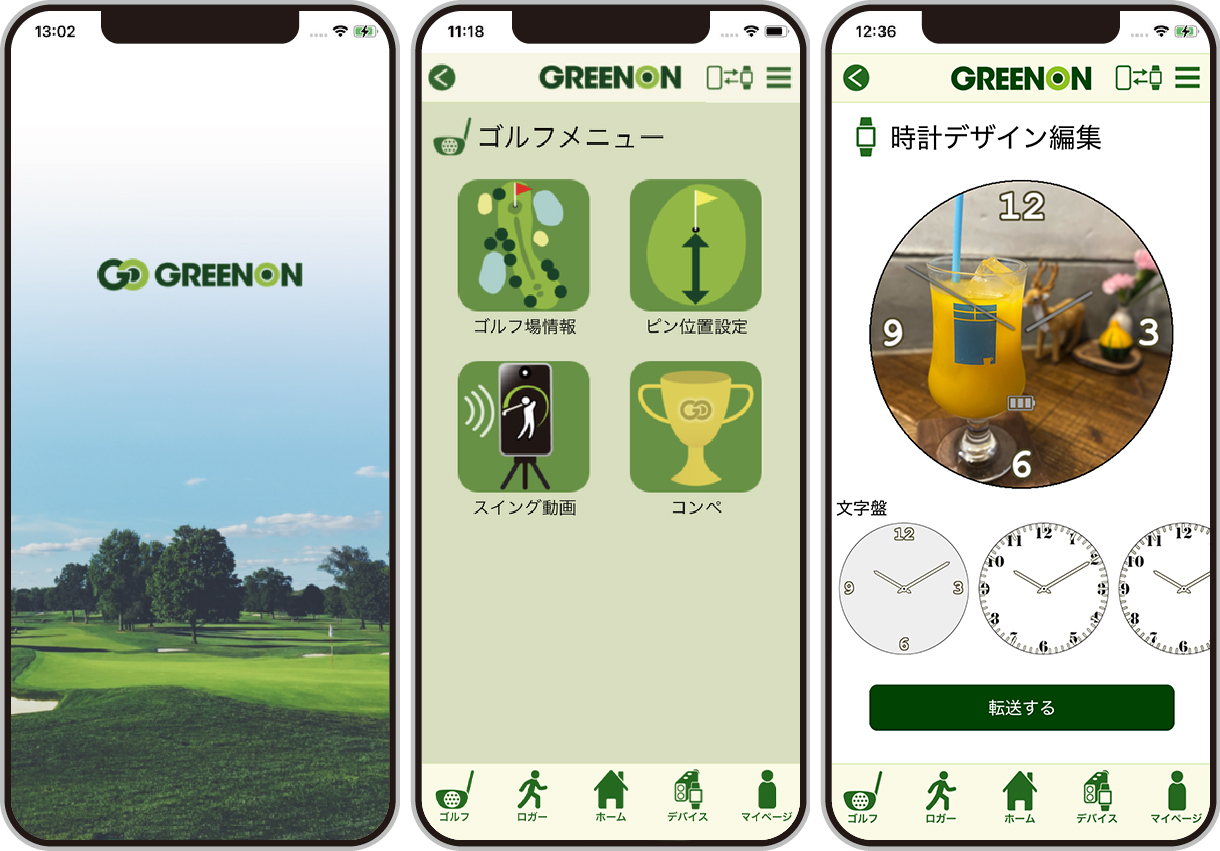 スマートフォンアプリ「GREENON」と連携し、簡単に自分のスイング動画の記録とスイングチェックができます。