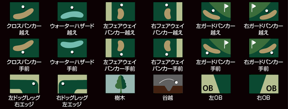 レイアウトデータがないホールではアプローチ画面は表示されません。 海外コースなどでレイアウトデータがあってもアンジュレーションデータのないホールではグリーン周辺のレイアウト画像のみ表示されます。