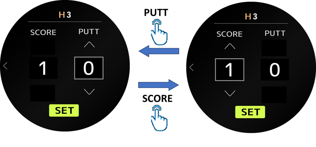 「SCORE」、「PUTT」の数値をタップするとそれぞれの値の編集モードになります。