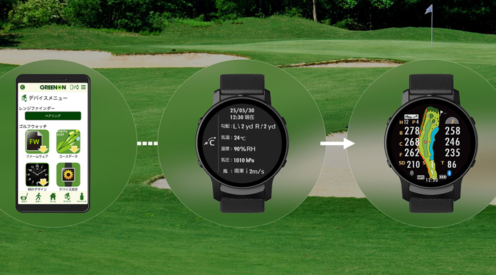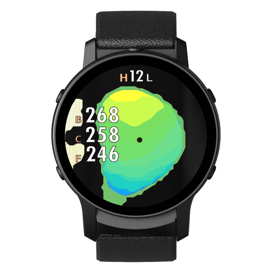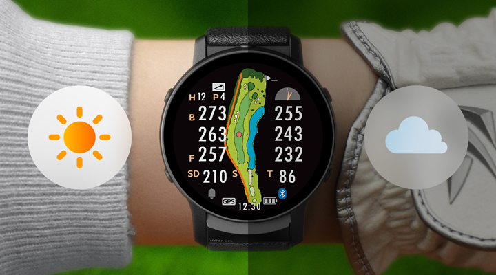 [NEW!]多機能でありながら、装着感、操作性、デザイン性にこだわったゴルフウォッチの完成形が誕生。AMOLED(有機EL)ディスプレイ(1.43インチ)を採用。タッチとボタンのデュアル操作で明るさ調整も可能。気象情報を加味したハイブリッド計測搭載。