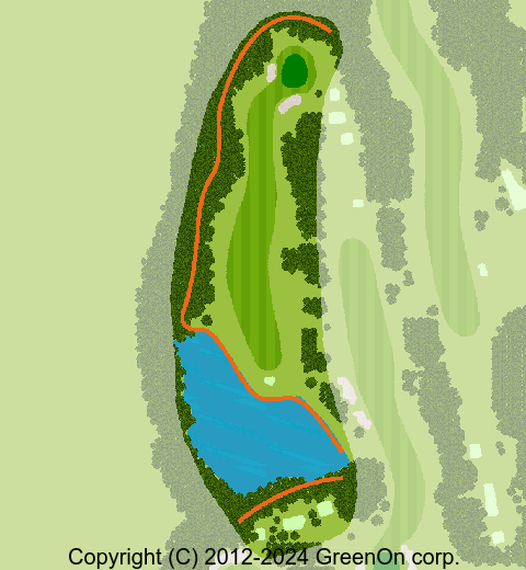 まっすぐにのびた見晴らしのよい池越えロングホール