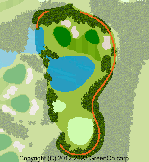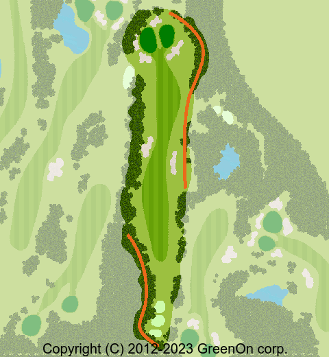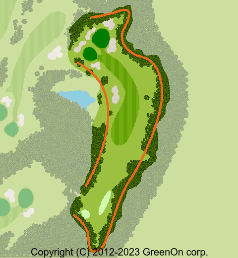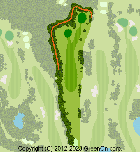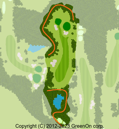 左に軽くドッグレッグした距離の短いミドルホール